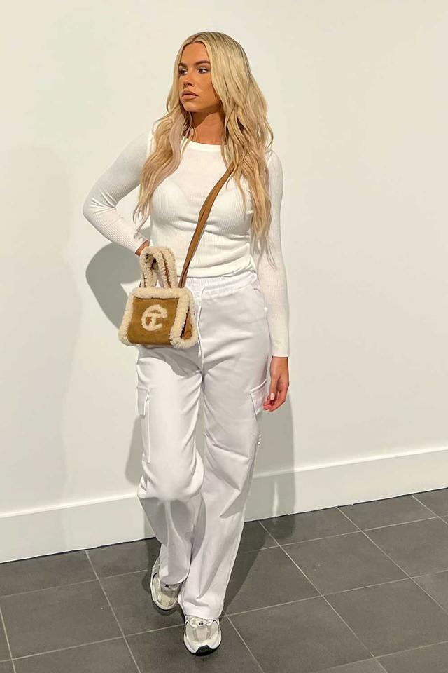 Women Plus Size Parachute Material Straight Fit Trouser Cargo Style White Color Back Pocket Cargo Pants for Women's
