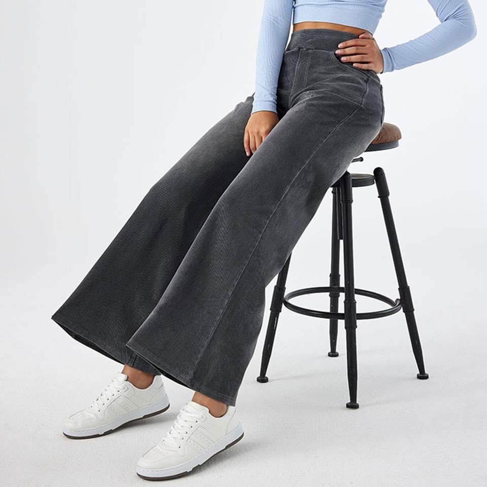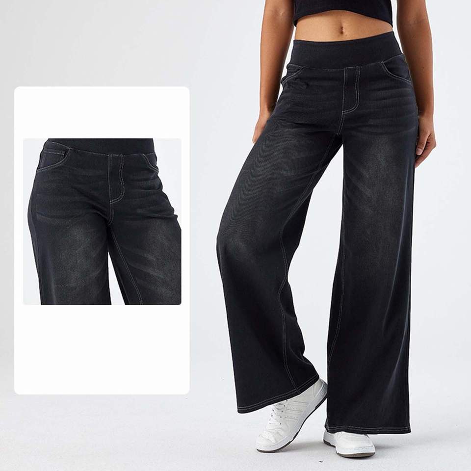 Women Pockets Straight Wash Vintage Jeans Fashion Elastic Waist Wide Leg Denim Jeans Women's Pants & Trousers Casual Streetwear