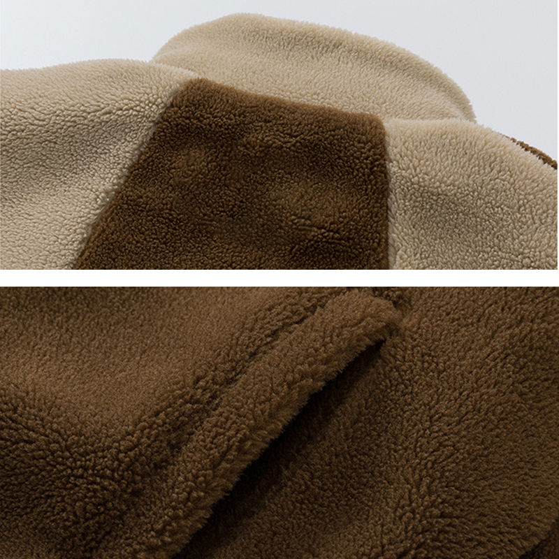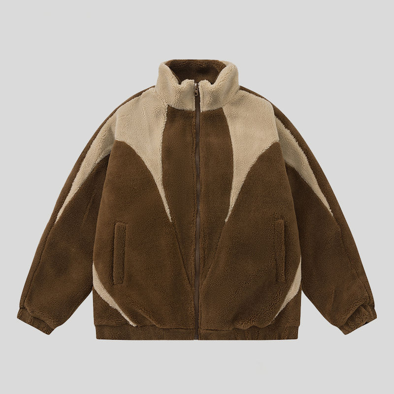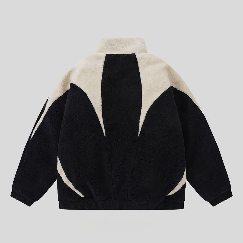 Women Polar Fleece Jacket OEM Custom Colorblock Patchwork Stand Collar Baggy Windproof Sherpa Fleece Jacket for Winter