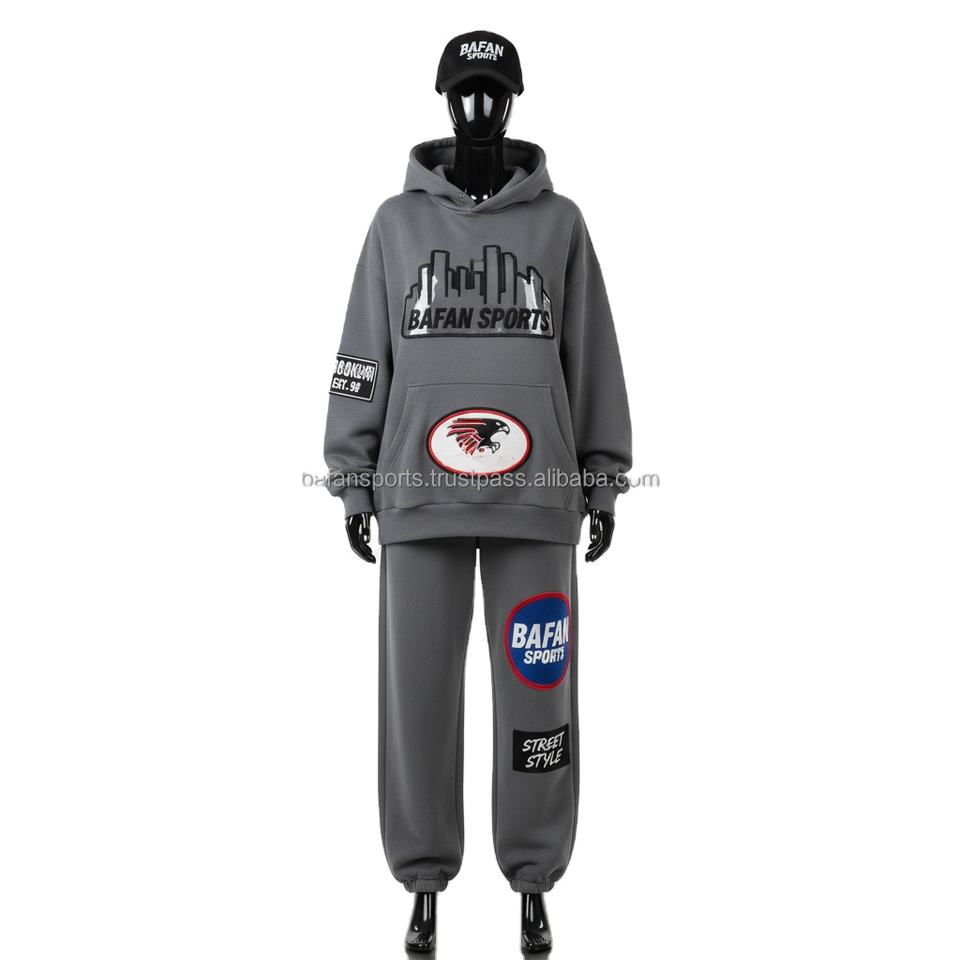 Women Premium Fleece Tracksuit 330 GSM Soft Brushed Fabric Gray Color Custom Logo Embroidery Street Style Tracksuits Plus size