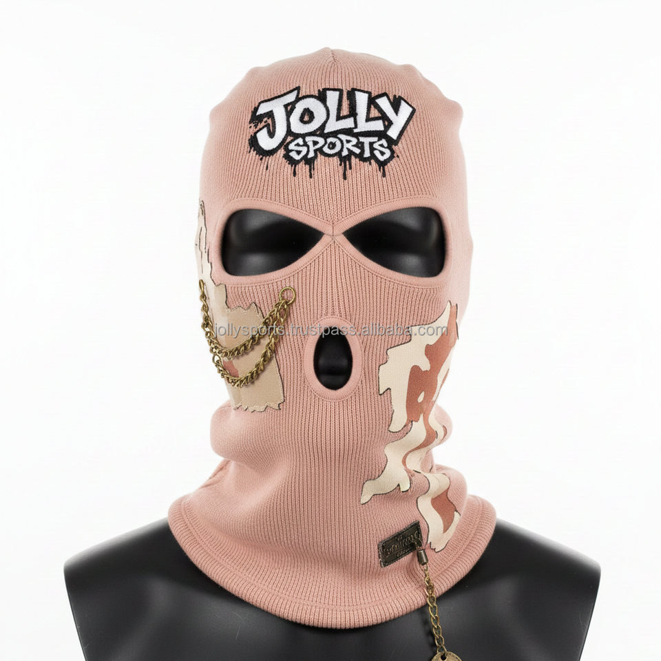 Women Premium Knit Balaclava 300GSM Soft Ribbed Fabric Pink Tone With Applique Side Panels And Custom Embroidered Logo balaclava