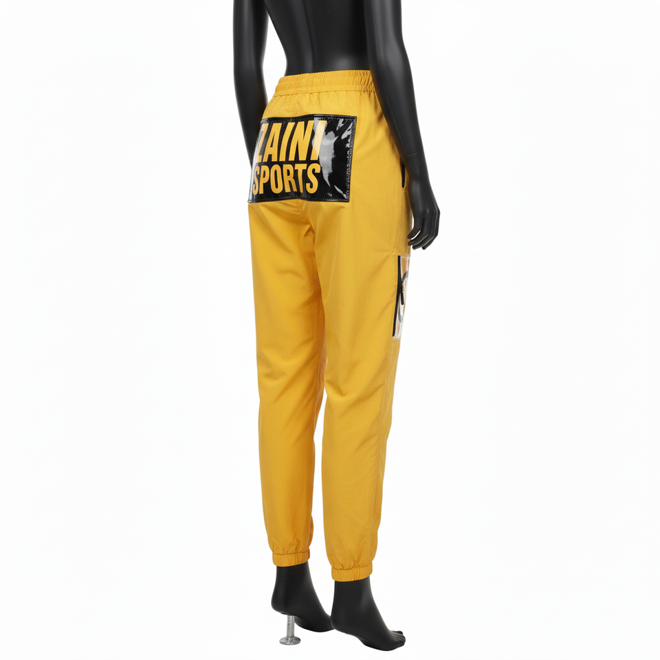 Women Premium Nylon Windbreaker Pant 120 GSM Breathable Fabric Yellow Cargo Panel Style Heat Press Logo Windbreaker Pants