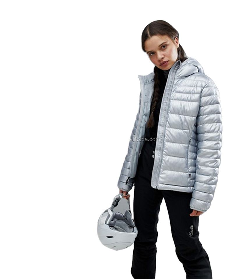 Women Quilted Padded Jacket in Silver, Factory OEM Winter Padded Jacket Custom Men Puffer Jacket
