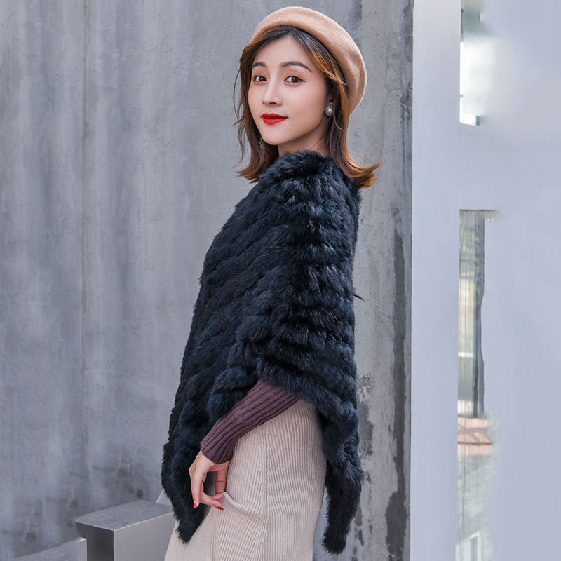 Women's Real Rabbit Fur Long Poncho Casual Winter Cape Handmade Fashion Knitted Elastic Shawl PINGRONG Breathable Solid 64-66cm