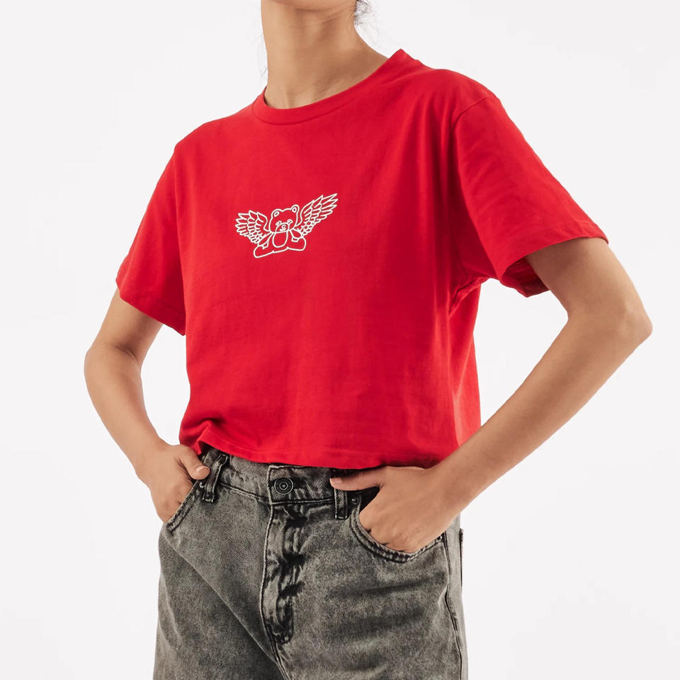 Women Red Crop Top Eagle Print Short Sleeve Cotton Tee Casual Streetwear Vintage Retro Graphic Fashion Top 2025 Trend