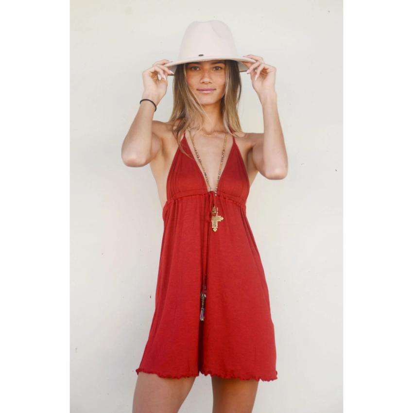 Women Red V-neck Maxi Dress Sleeveless Backless Casual Summer Beach Eco-Friendly Natural Waist