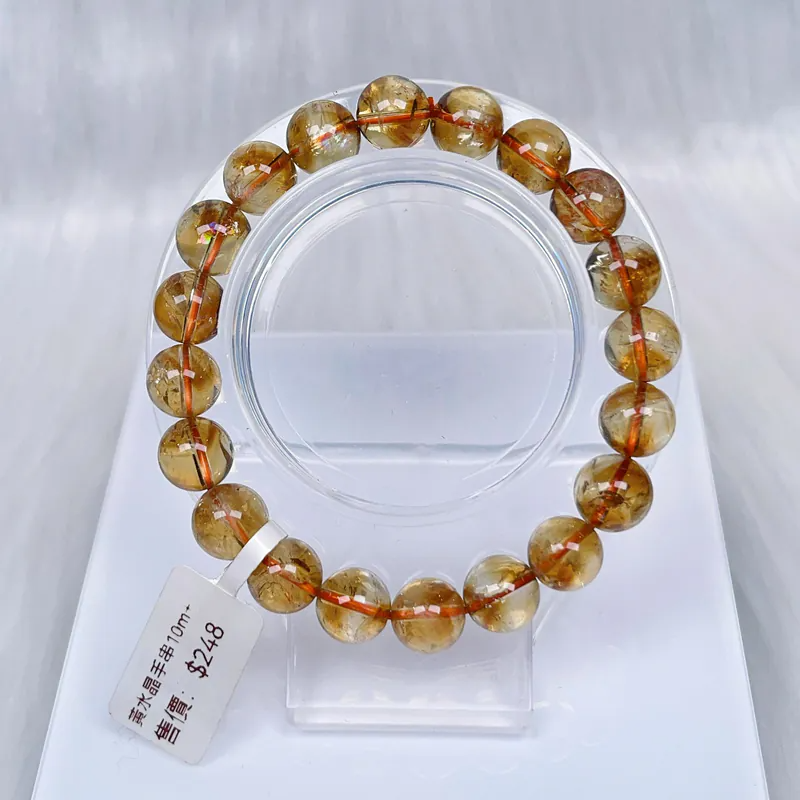 Women Reiki Energy Yellow Crystal Citrine Bangles Lucky Wristband Quality Natural Golden Quartz Round Bead Bracelet
