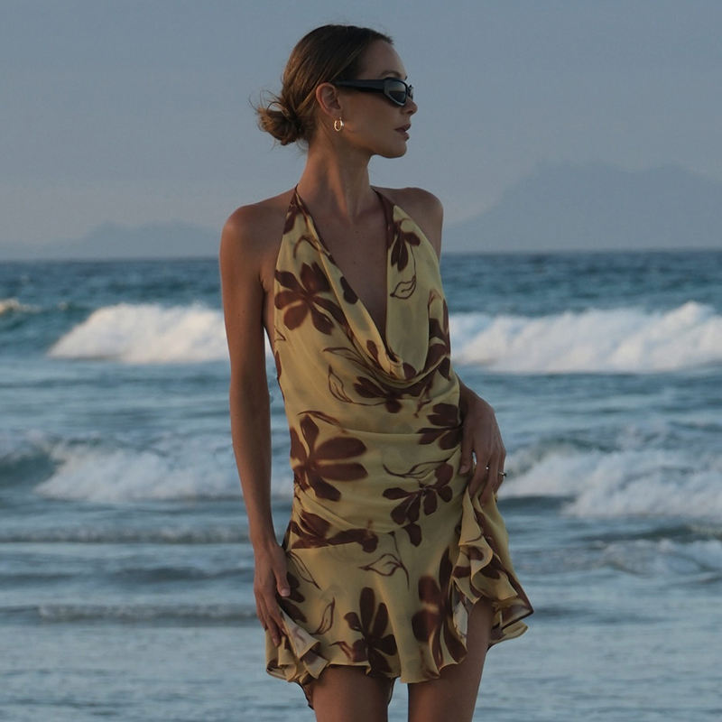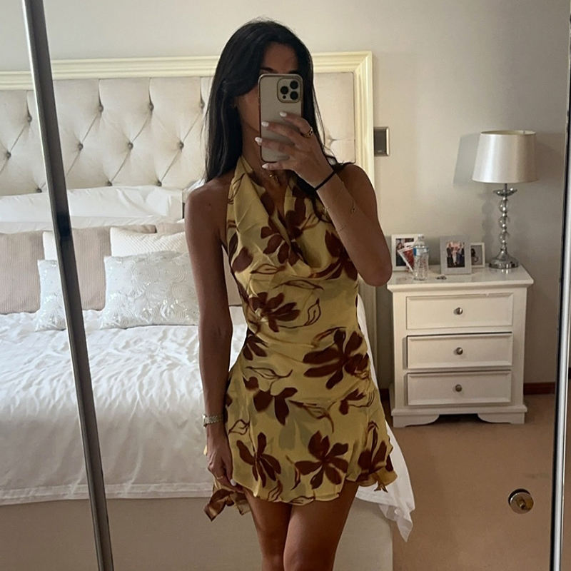 Fashion Element:Halter Lace Up, Vintage, Backless, Floral Print