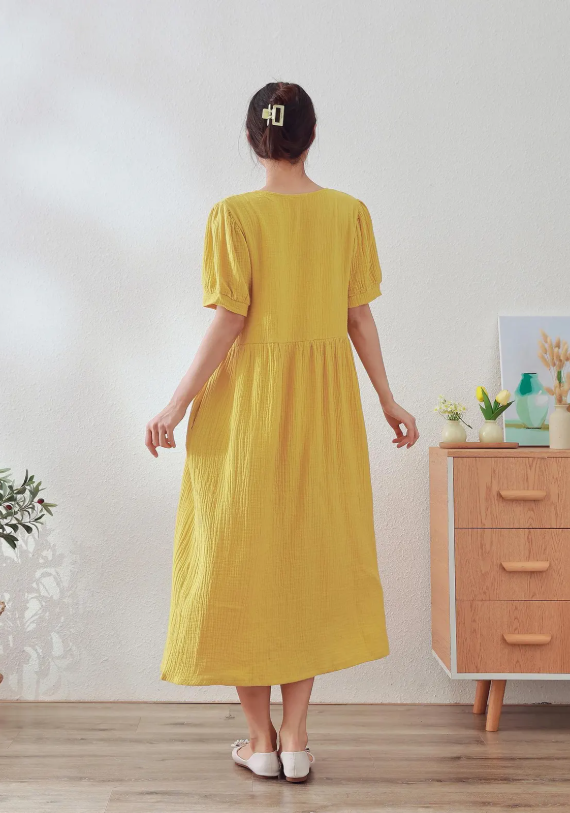 Women Retro Loose Half Sleeve Summer Dresses Vacation Cotton Linen Clothing O-neck Solid Color Long Dress Best Quality Dress