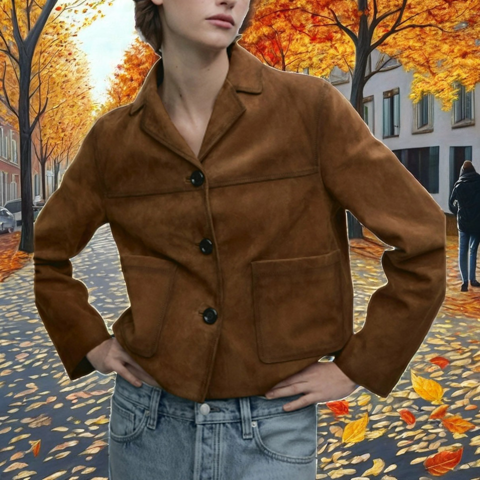 Women Retro Suede Canvas Jacket Coat Suit Collar Single-breasted Long-sleeved Sporty Casual Short Autumn Windproof Overcoat
