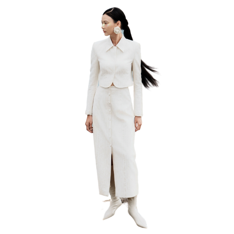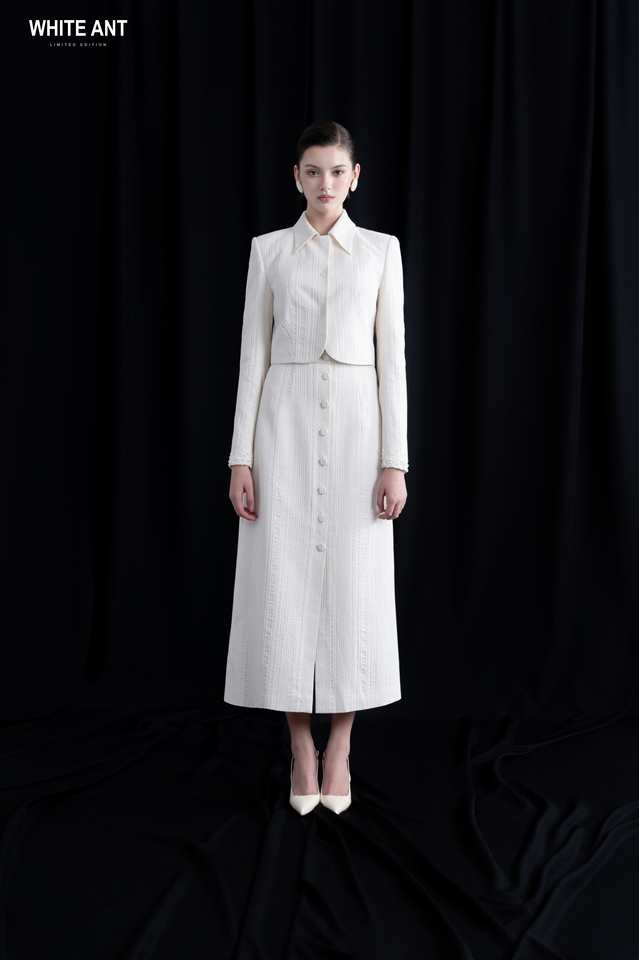 More details:Oversized collar, box pleats, four patch pockets button with flaps.