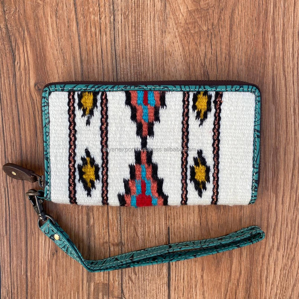 Women Saddle Blanket Clutch Western Turquoise Embossed Floral Leather Wristlet Wallet Handmade Luxury Credit Card Holder Wallets