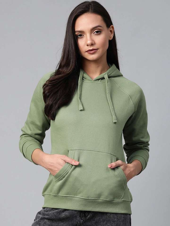 Women Sage Green Fleece Hoodie Soft Warm Pullover Long Sleeve Kangaroo Pocket Custom Option Comfy Casual Wear Front Eco-Friendly