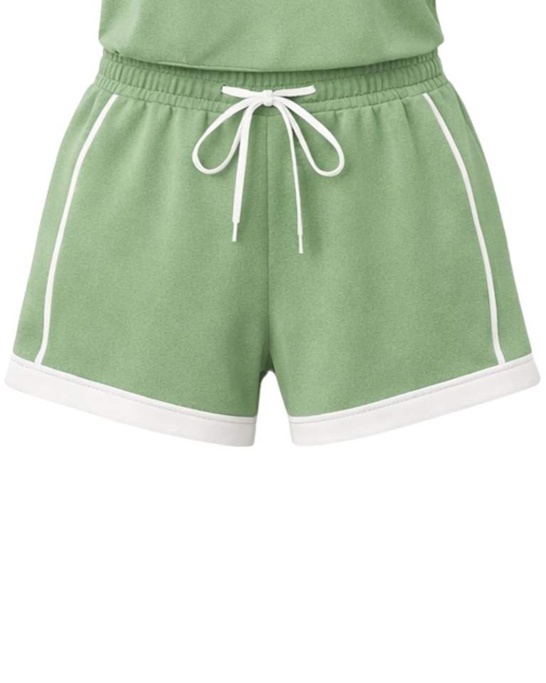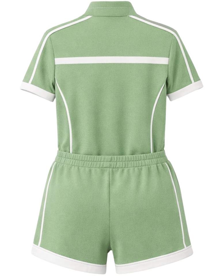 Women Sage Green Quarter Zip Polo Shirt And Drawstring Shorts Two Piece Tracksuit Athletic Sportswear Set For Women Gym WearFit