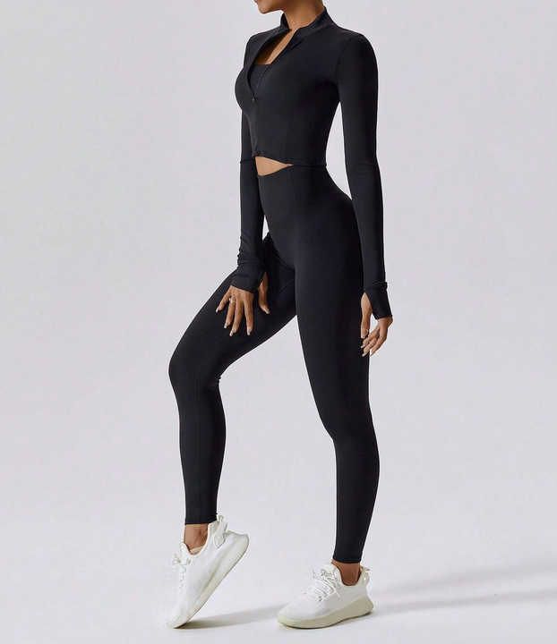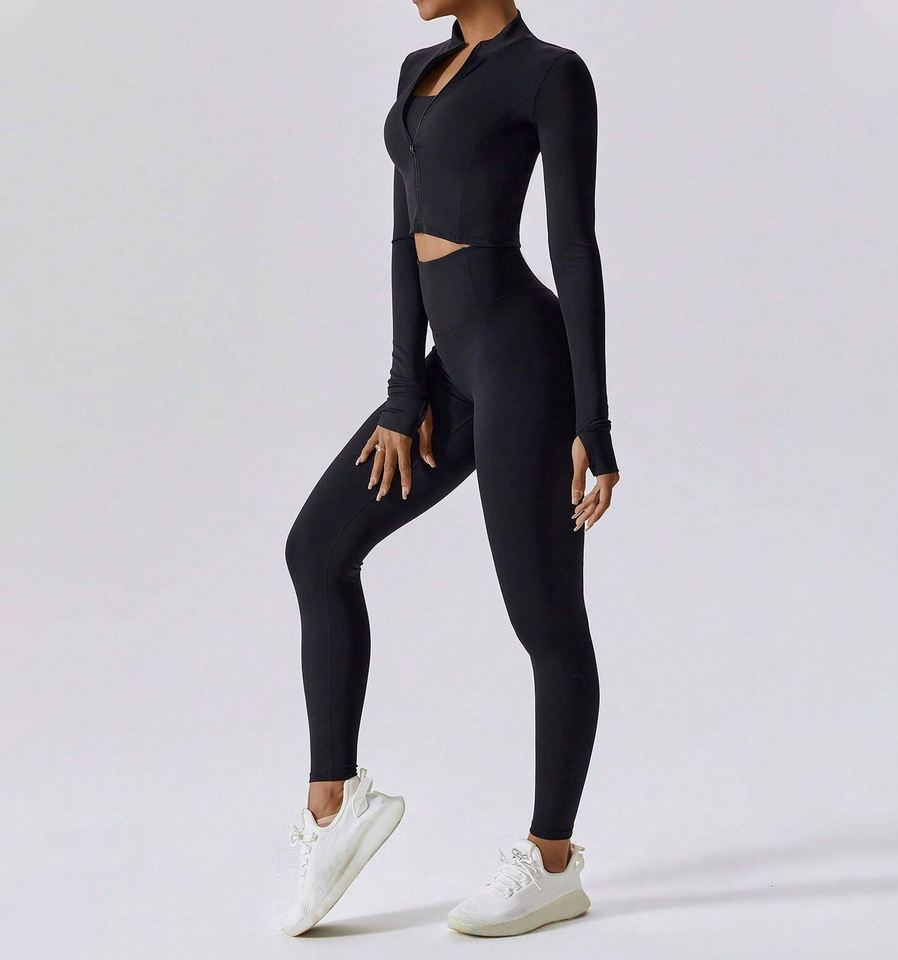Product Name:Zip Front Long Sleeve Top And Legging Gym Set