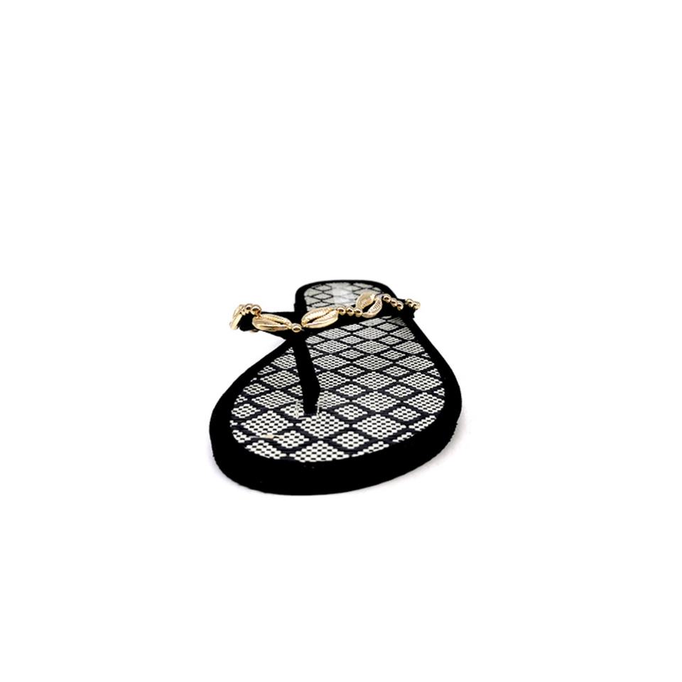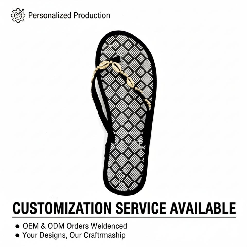Women Seashell Flip Flops Gold Bead Strap Beach Sandals Black White Grid Pattern Summer Slippers Custom Logo