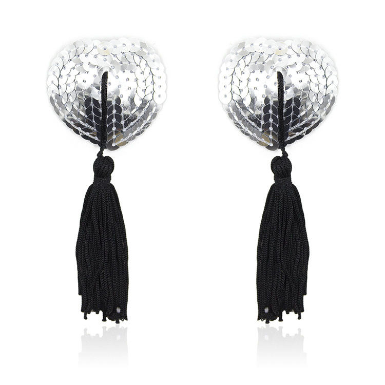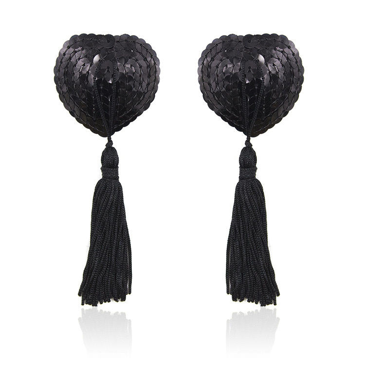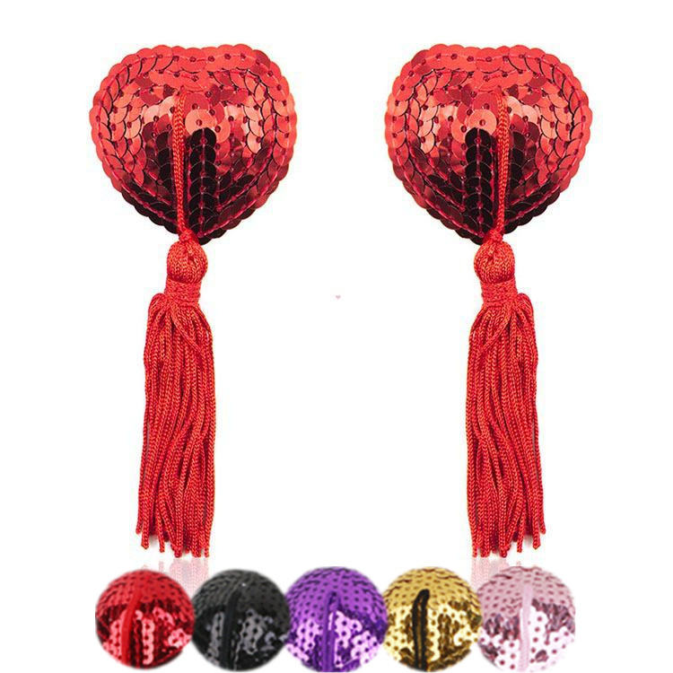 Women Sequin Heart Chest Covers Stick Breast Bra Nipple Cover Pasties with Tassel