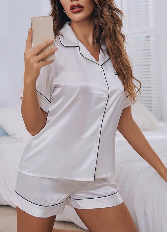 Women Sexy Lingerie Pajamas Set 2Pcs/Set Elegant Short Sleeve Top and Shorts Night Suit Underwear Sleepwear On Sales