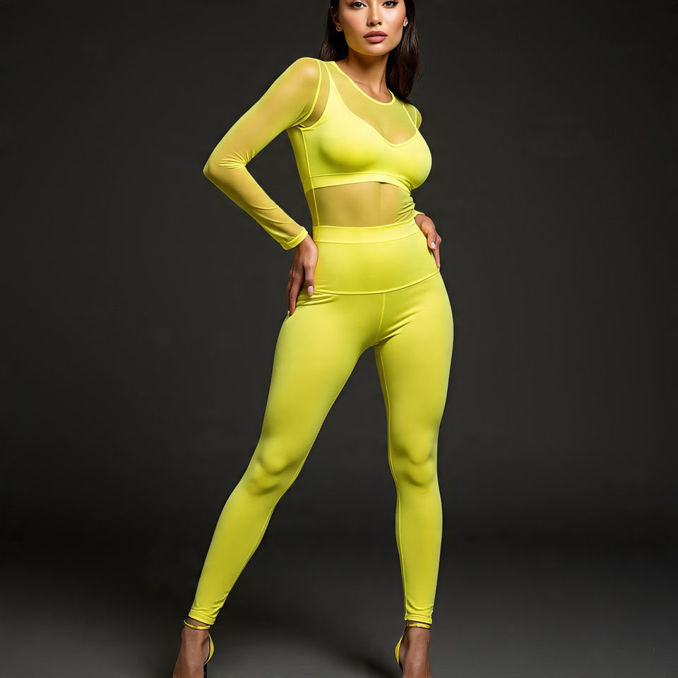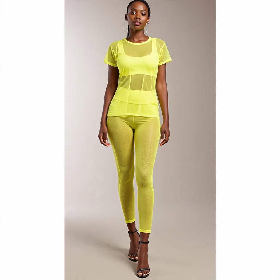 Women Sexy Long Sleeve 2 Piece Sheer Mesh T Shirts Flare Leggings See Through Sets Ladies Beach Swim Sheer Mesh Two Piece Sets