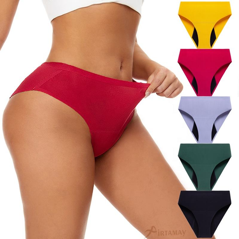 Women Sexy Low-Rise 4-Layer Leak-Proof Reusable Solid Color Plus Size Seamless Breathable Anti-Bacterial Thongs for Panties
