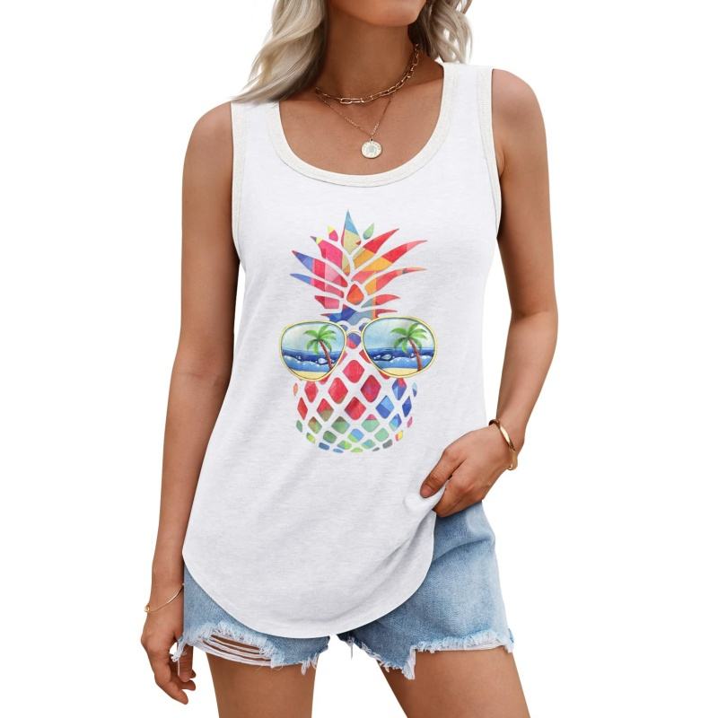 Women Shirt Summer Clothes Women's Clothing Womens Loose Fit Casual Flowy Tank Tops Round Neck Trendy Sleeveless Summer Tops