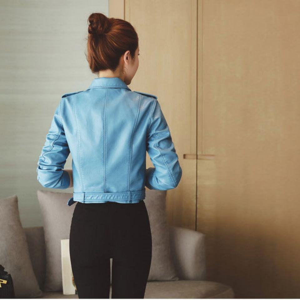 Women Short Faux Soft Leather Jacket Coat Casual Long Sleeve Zipper Motorcycle PU Leather Jacket Autumn Lady Bomber Jacket