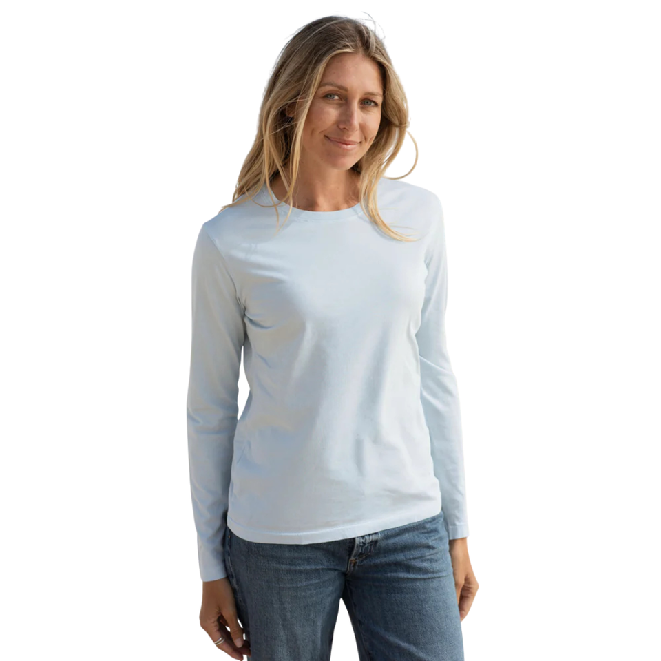 Women Sky Blue Long Sleeve Crew Neck T Shirt 100% Luxury Organic Cotton Pre Shrunk GOTS Certified Premium Soft Classic Fit Tee
