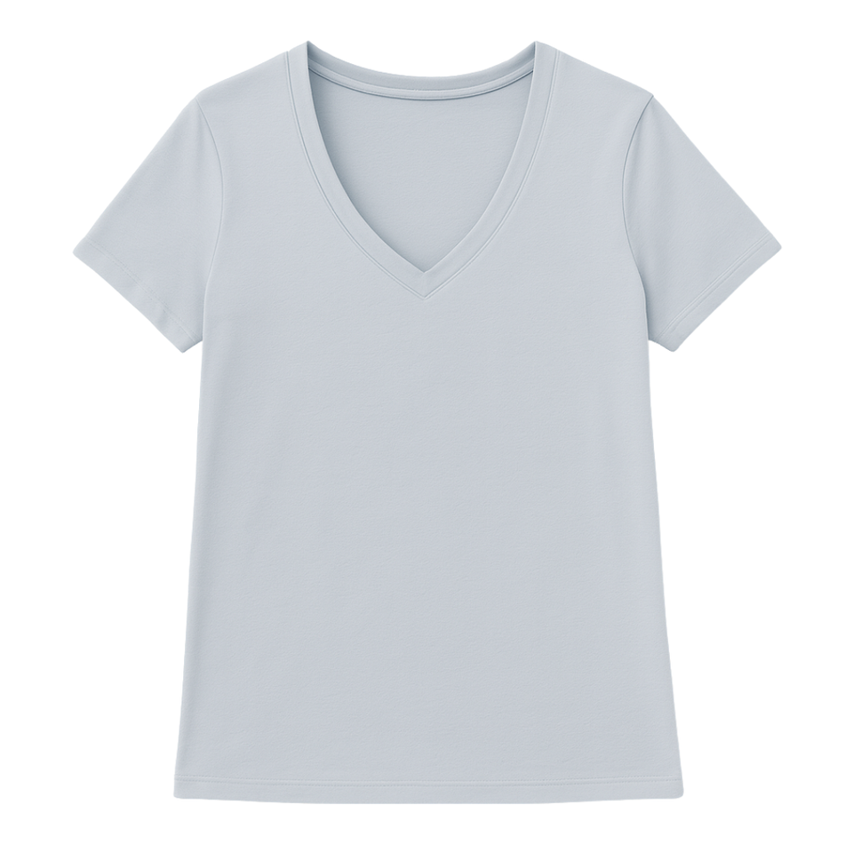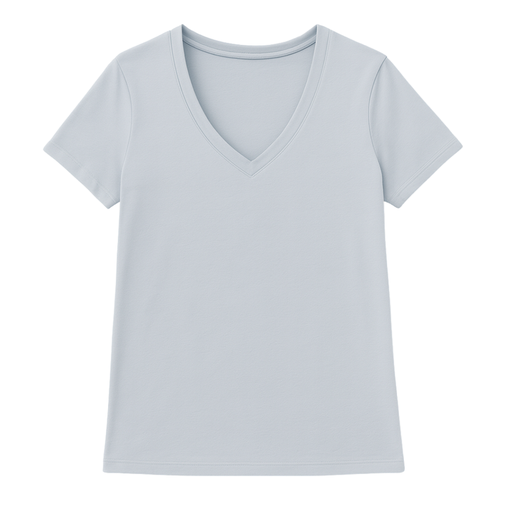 Women Sky Blue Short Sleeve V Neck T Shirt 100% Luxury Organic Cotton Pre Shrunk GOTS Certified Premium Soft Breathable Fit Tee