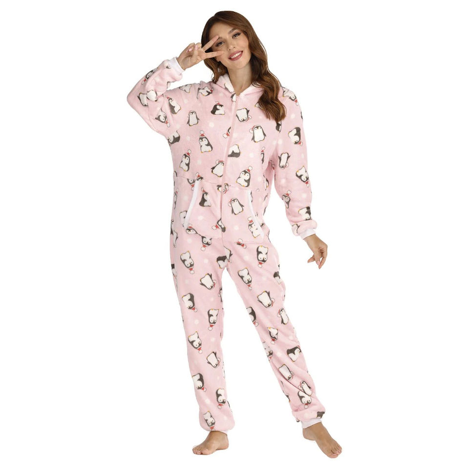 Women Sleepwear Jumpsuits Non-Hooded Pockets Zipper Onesie One Piece Solid Pajamas Homewear Long Sleeve Nightwear Pyjamas
