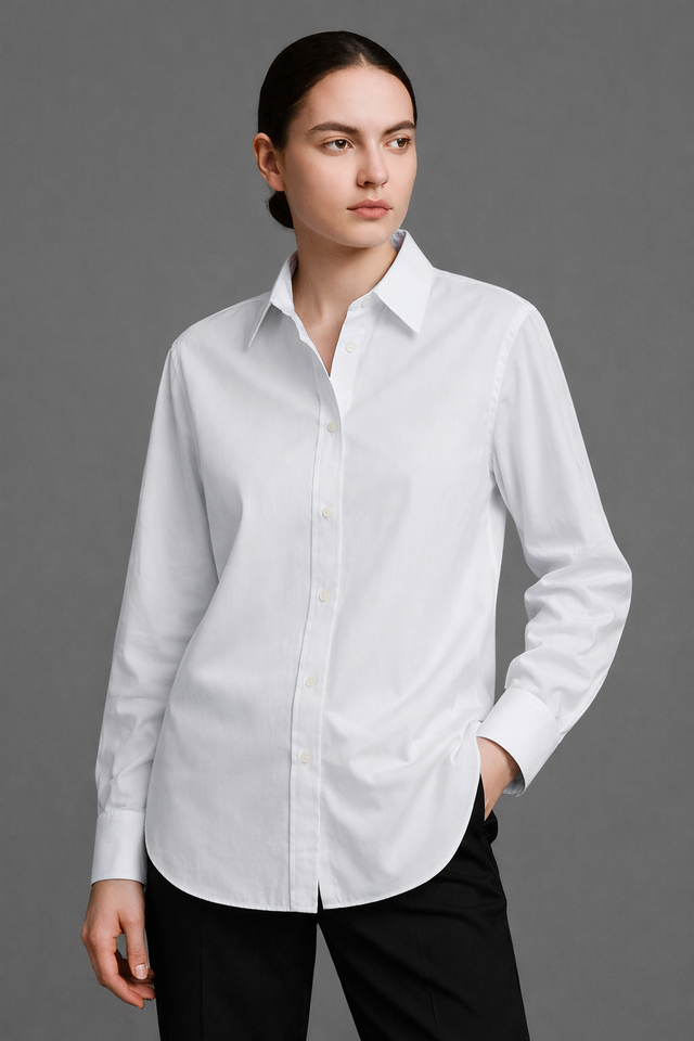 Women Solid Button Down Shirt Long Sleeve Casual Office Blouse Cotton Blend Fabric Vietnam OEM ODM Custom Logo