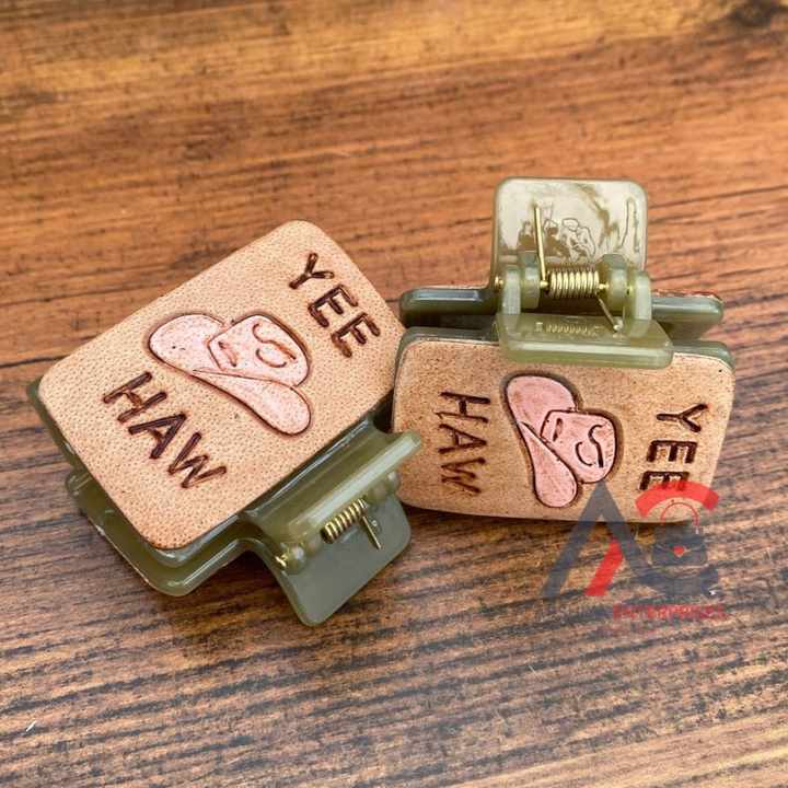 Hand Tooled Genuine Leather Mini Hair Claw Clips