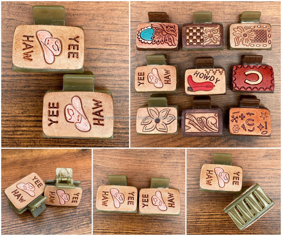 Product name:Hand Tooled Genuine Leather Mini Hair Claw Clips