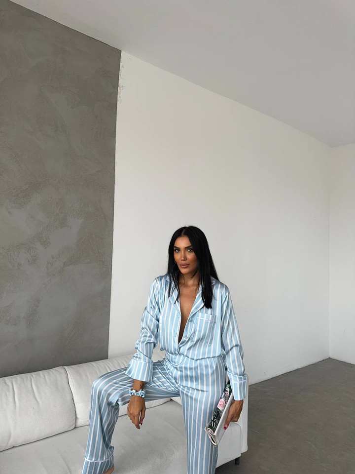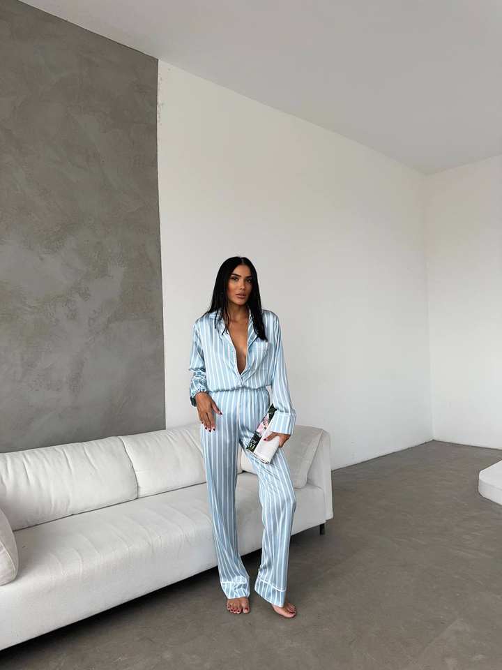 Women Solid Soft Thermal Breathable Satin Pajama Set Long Sleeve Button-Up Shirt and Pants Sleepwear Nightwear Loungewear
