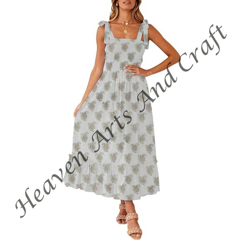 Women Spaghetti Strap Dress Hand Block Print Women's Tunic Spaghetti Strap Dress Cotton Kurti L, M, Xl Free Size
