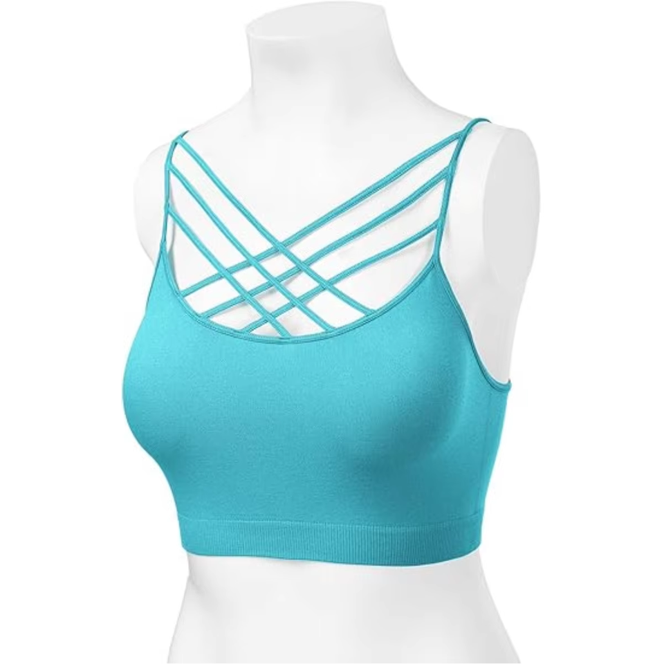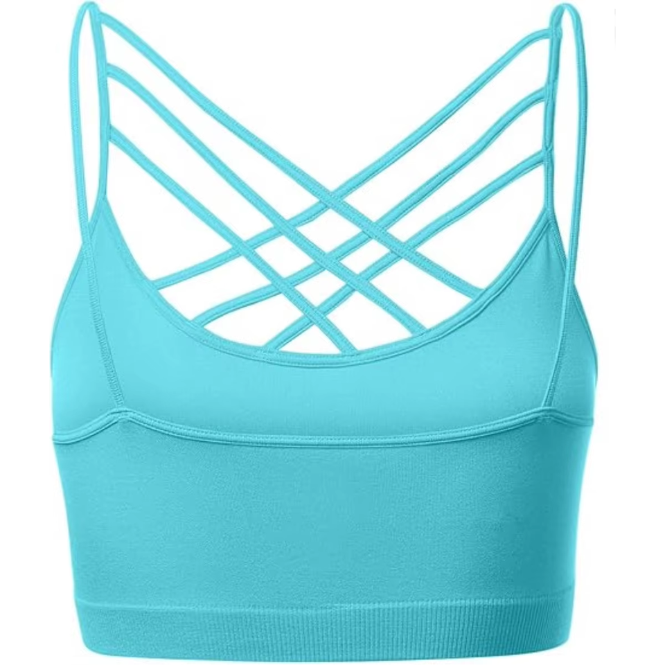 Women Sports Bra Cross Strap Front Soft Stretch Gym Yoga Workout Bra Sweat Wicking Support Fit For Mens
