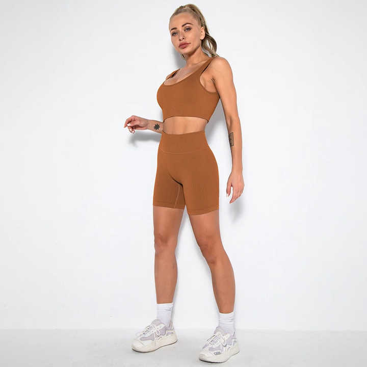 Women's Solid Pattern 2-Piece Yoga Sportswear Sports Bra Leggings Gym Fitness Workout Sets with Front Logo Ropa Deportiva Mujer