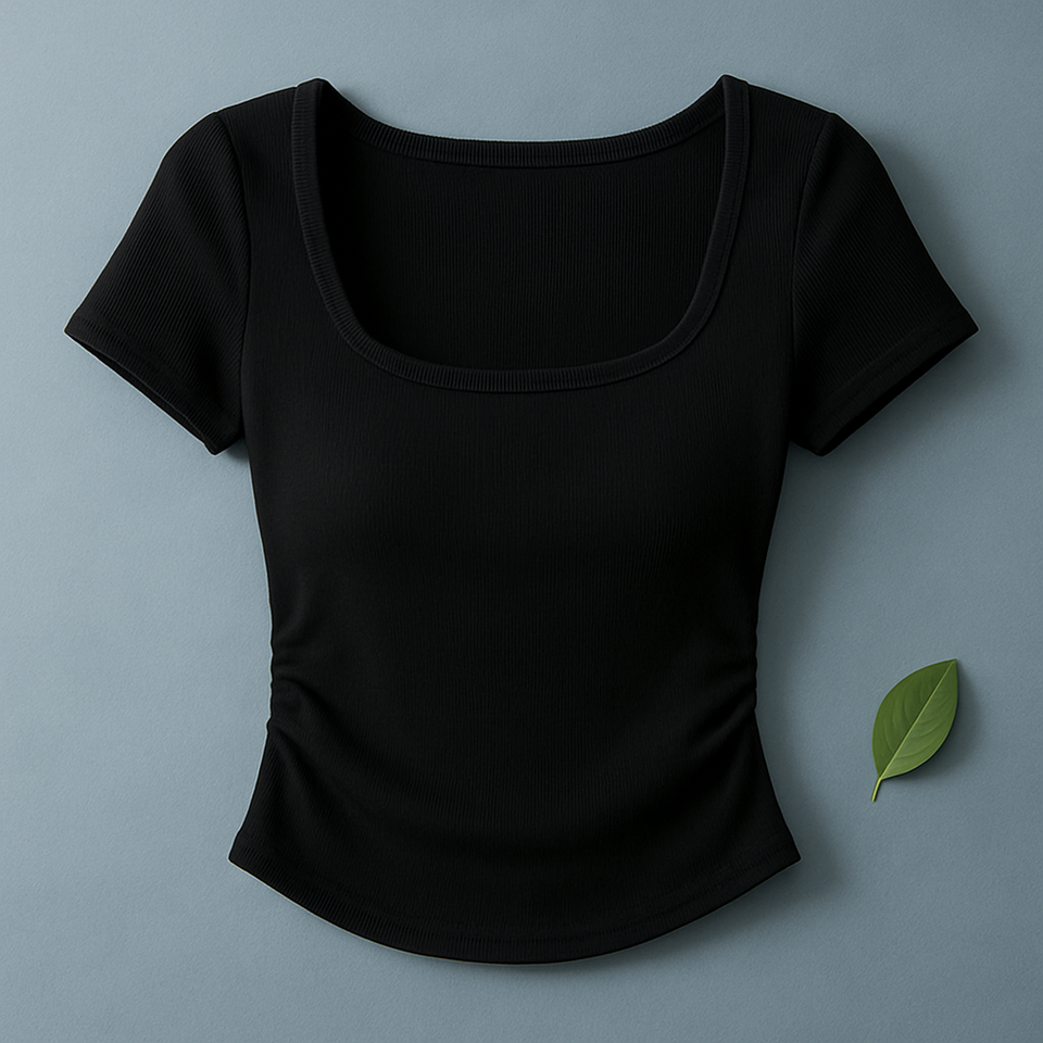 Women Square U-Neck Short Sleeve Tee Shirts Casual Slim Fit T-shirts With Ruched Sides Detail