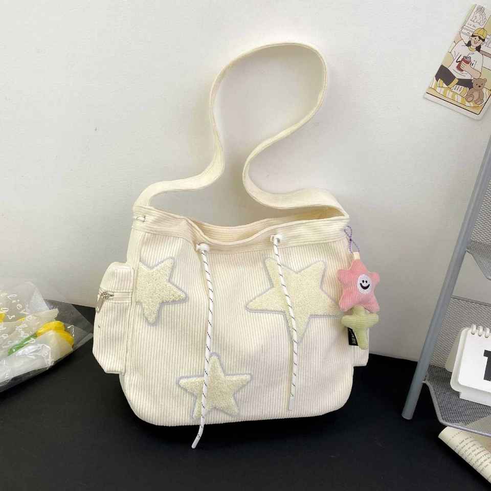 Women Star Pattern Corduroy Crossbody Bag Casual Tote Lady Simple Large Capacity Shoulder Bag Girl Travel School Bookbag Handbag