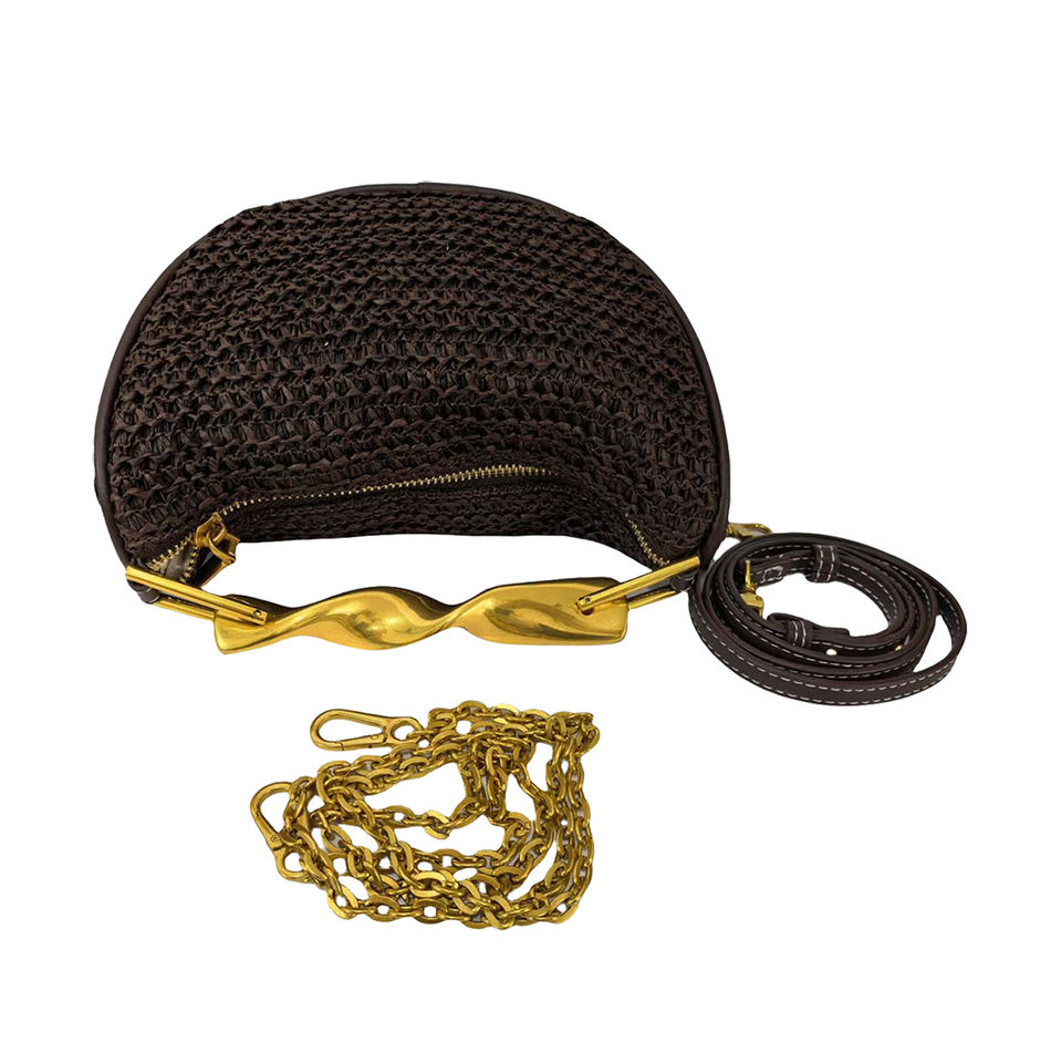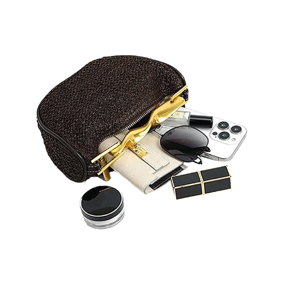 Women Straw Woven Handbag Summer Beach Clutch Purse Metallic Handle Shoulder Crossbody Bag for Travel Party