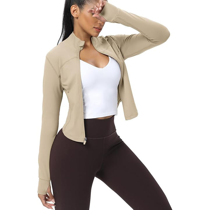 Women Stretch Athletic Jacket Full Zip Lightweight Top Soft Yoga Wear Training Comfort Nylon Spandex Fabric