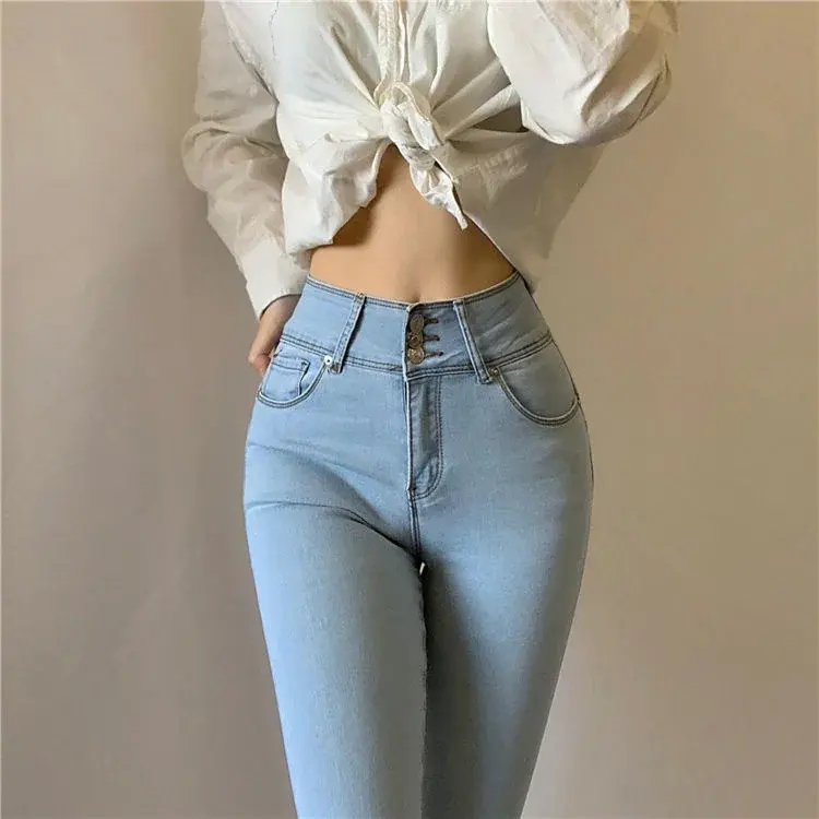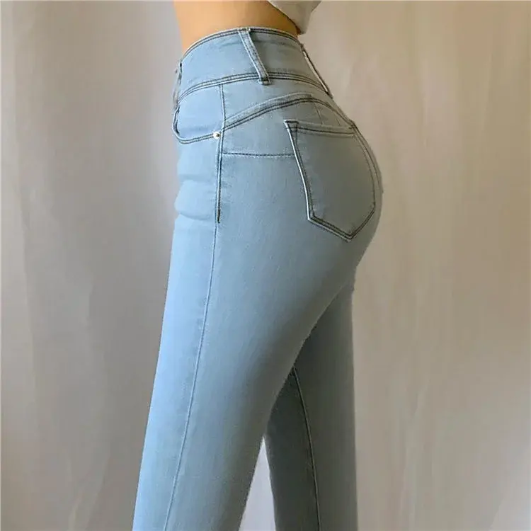 Women Stretch Slim Jeans High Waist Push up Hips Elastic Cotton Blue Denim Pants Female Casual Trousers Plus Size