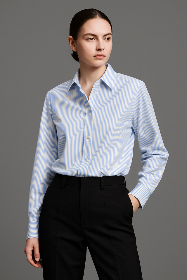 Women Classic Stripe Cotton Poplin Shirt