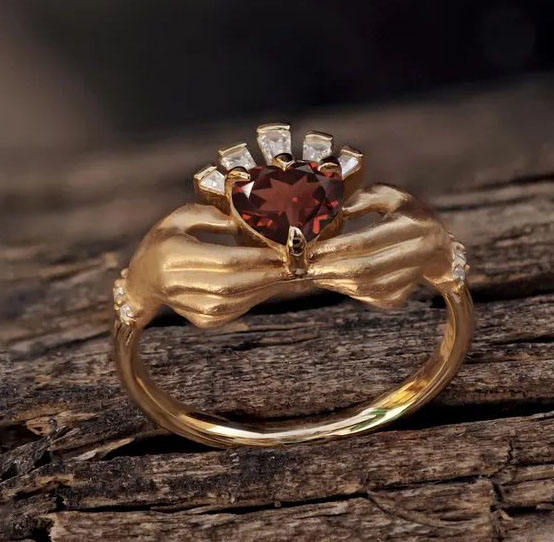 Women Stylish 14K Gold Ring Trendy red garnet and Moissanite for Engagement Anniversary April and June Birthstone Celebration