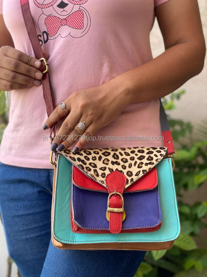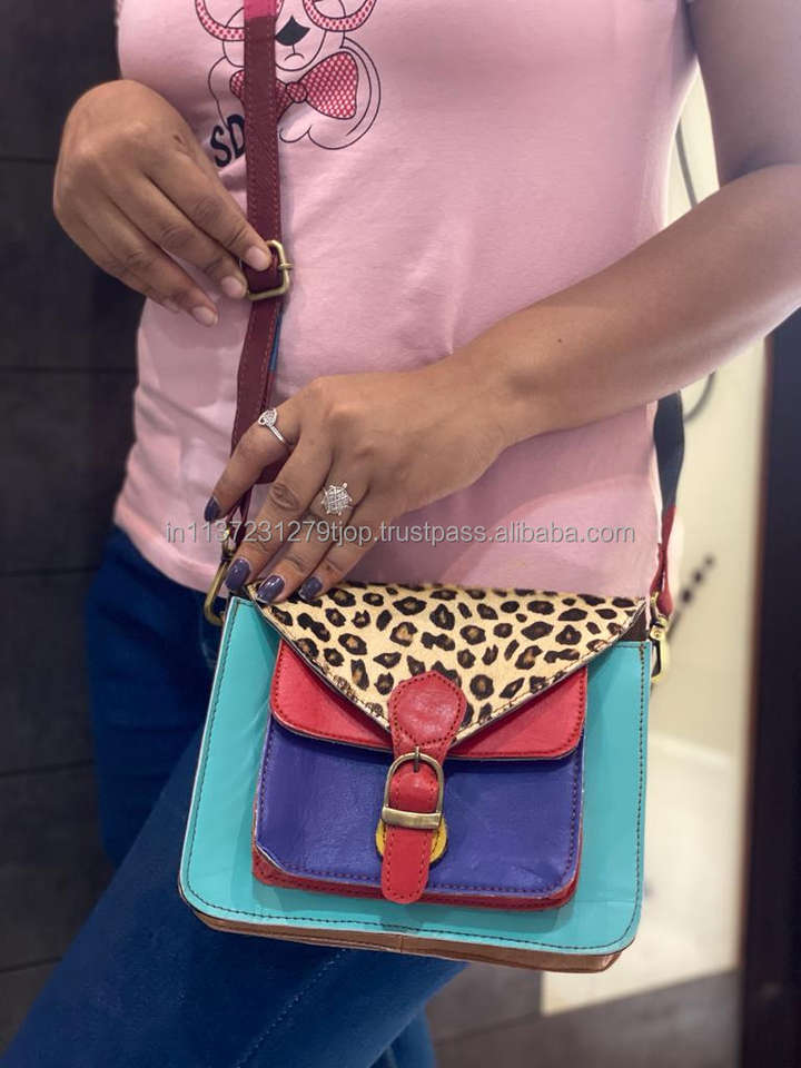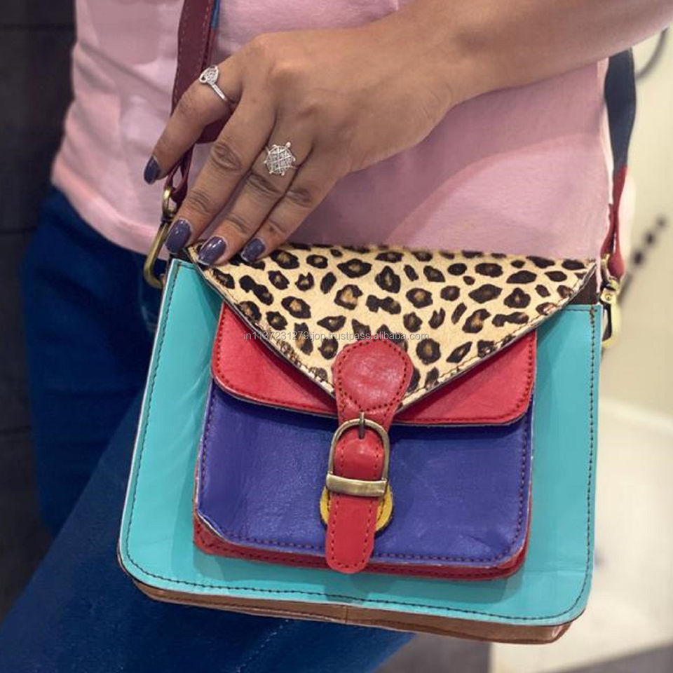 Women Stylish Genuine Fur Leather Animal Print Handbag Shoulder Sling Bag