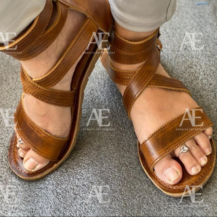 Women Stylish Tie up Sandal Full Grain Leather Flip Flop Sandal Slipper
