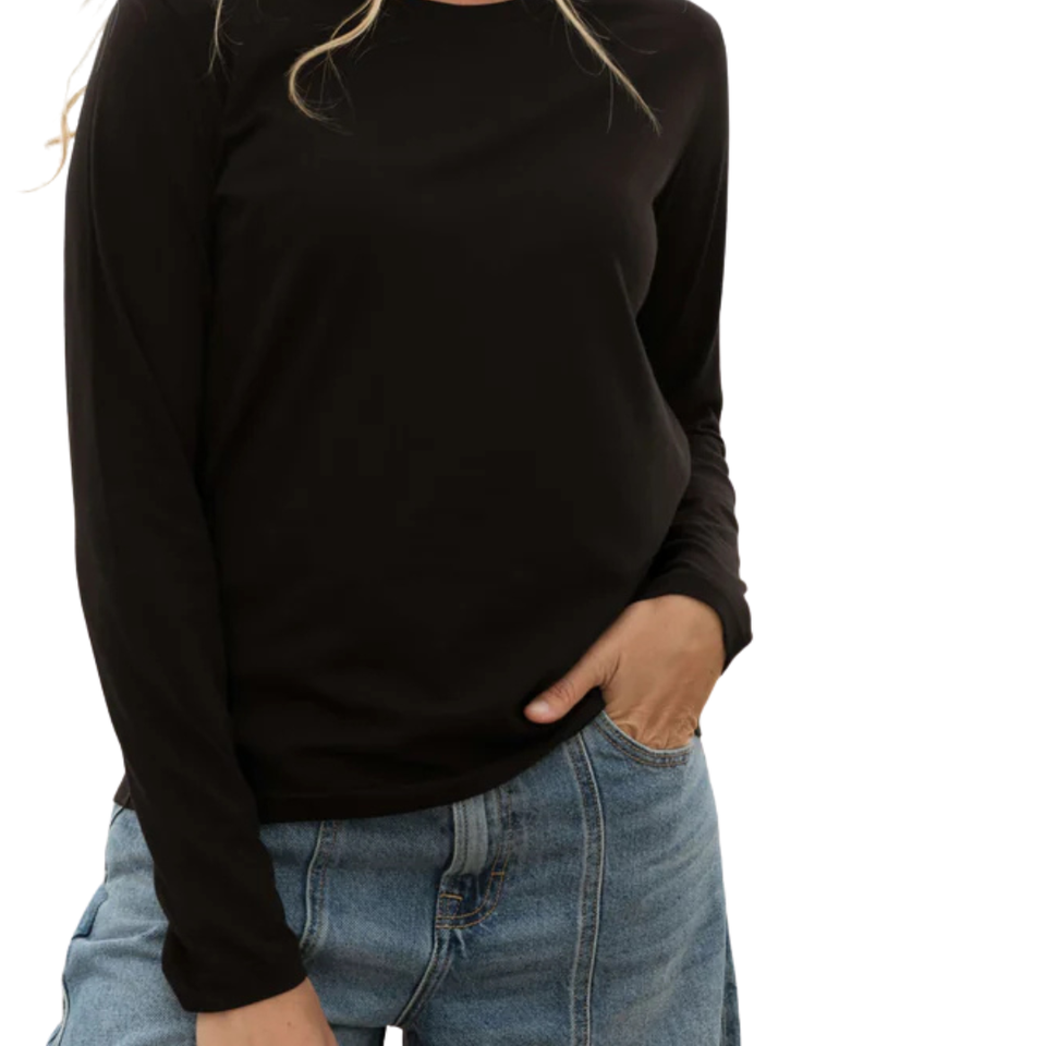 Women Summer Black Heavyweight Long Sleeve Crew Neck T-Shirt 100% Luxury Organic Cotton Pre-Shrunk GOTS Certified Premium Soft