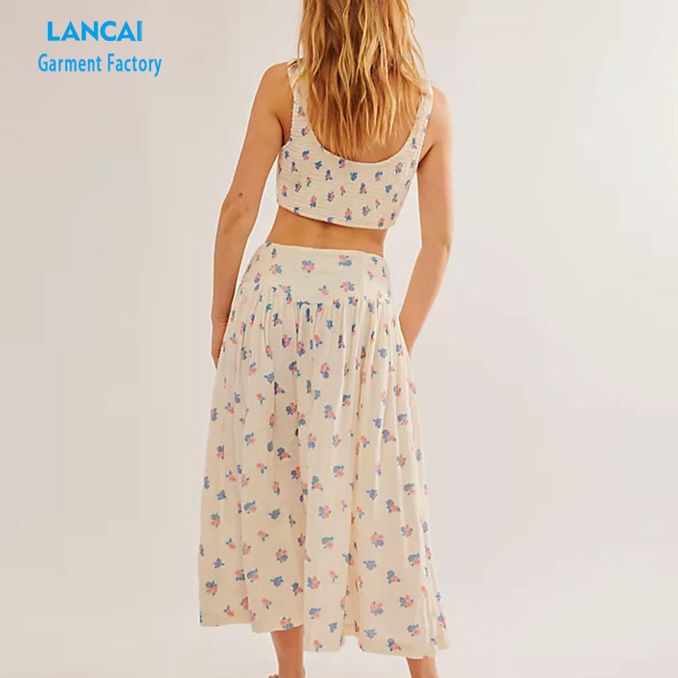 Women Summer Floral Sets Sexy Tank Tops Long Print Long Skirt Dress Design Beach Suit Holiday Elastic Waist Two Piece Set