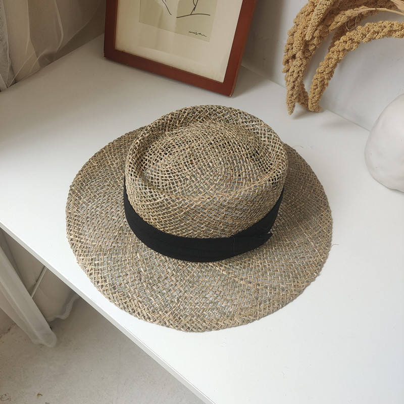 Women Summer Seagrass Hat/ Wide Brim Boater Straw Sun Beach Hat 99GD