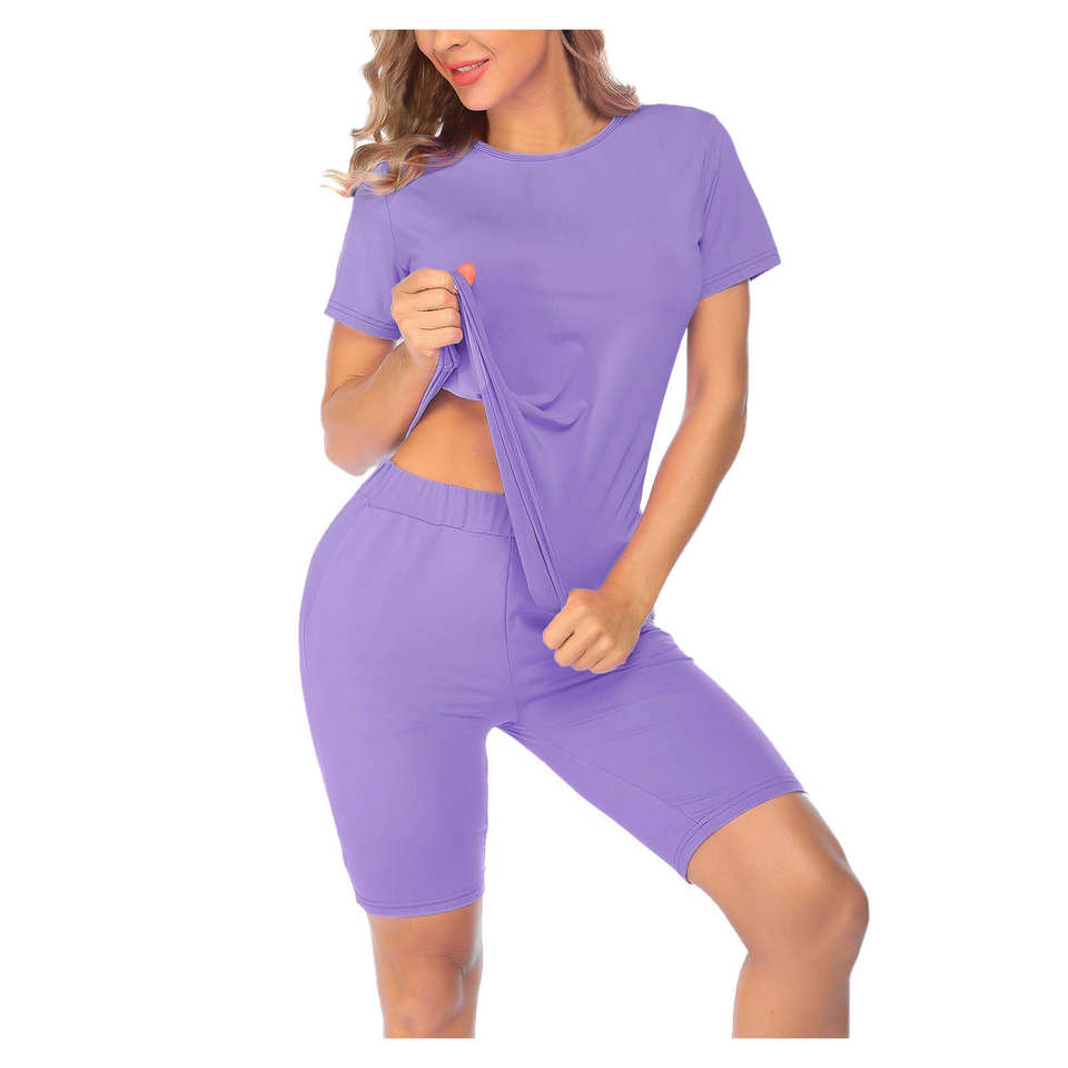 Women Summer Solid Casual Short Sleeved T Shirt Shorts Set Wear Workout Sets for Women 2 Piece Two Piece Short Set