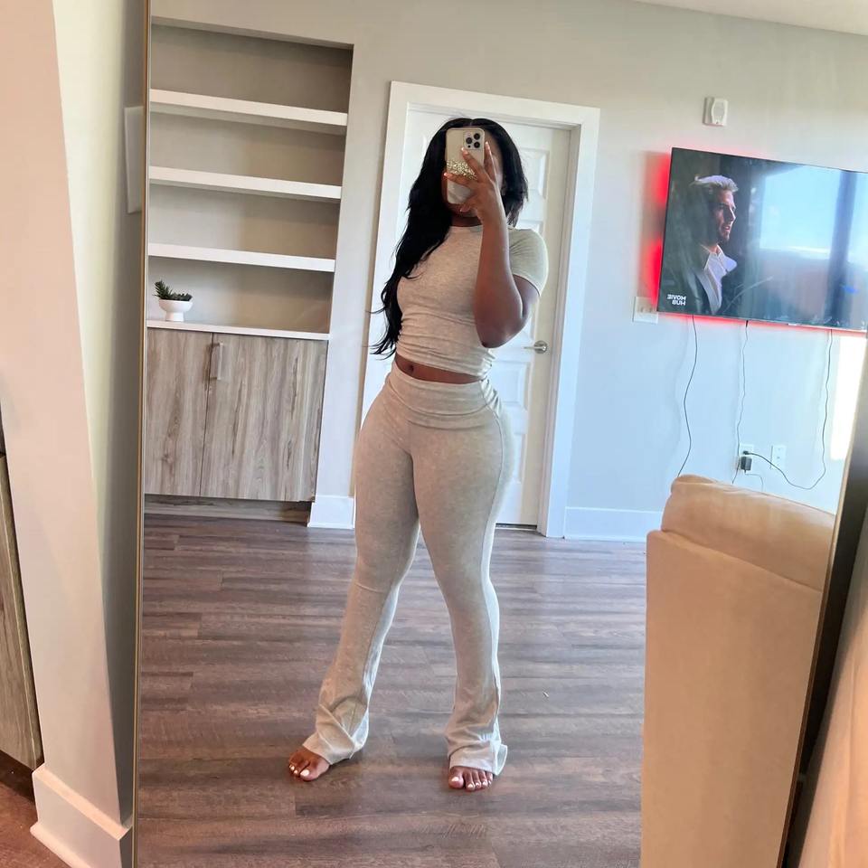 Women Tall Girl Two Piece Outfits Loungewear Summer Set 2 Casual Cotton Workout Yoga Fold Over Pants Flare Legging Set Spring